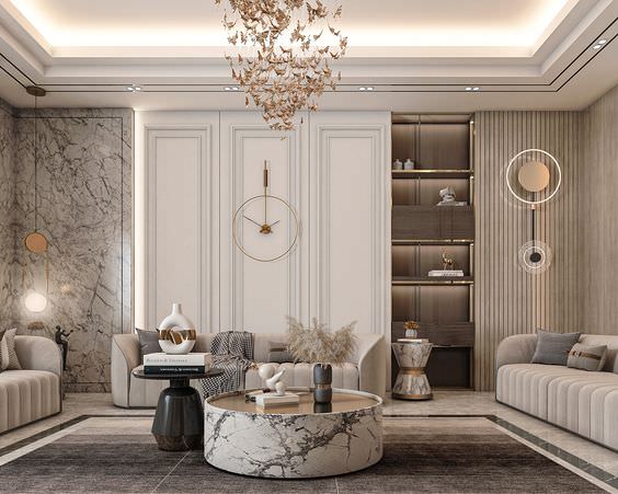 Dizajni i brendshem neoklasik bazohet ne shtepite e evropianeve dhe amerikaneve te pasur ne vitet 1700 dhe fillim te viteve 1800. Nga ana tjeter, ata e bazuan stilin e tyre ne periudhen klasike te Greqise dhe Romes antike. Kjo shihet ne perdorimin e kornizave te gipsit(duke imituar kolonat klasike),ne perdorimin e ngjyres gold,shandaneve apo ndricuesve te medhenje dhe gjithashtu perdorimin e objekteve dekorative klasike. Per me tepër, stili perdor shume elemente druri ne mobilje. Stili karakterizohet nga eleganca dhe perjetesia e tij.Ne kete stil,nuk mungon luksi qe kapercen epoken e ndertuar ne neoklasik.